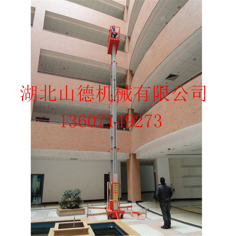 鋁合金升降平臺(tái)體積小,可以自由進(jìn)出門廳、電梯,廣泛用于工廠、賓館、餐廳、車站、影劇院、展覽館等場(chǎng)所,是機(jī)具保養(yǎng)、油漆裝修、燈具調(diào)換、電器清潔的最佳高空作業(yè)設(shè)備.